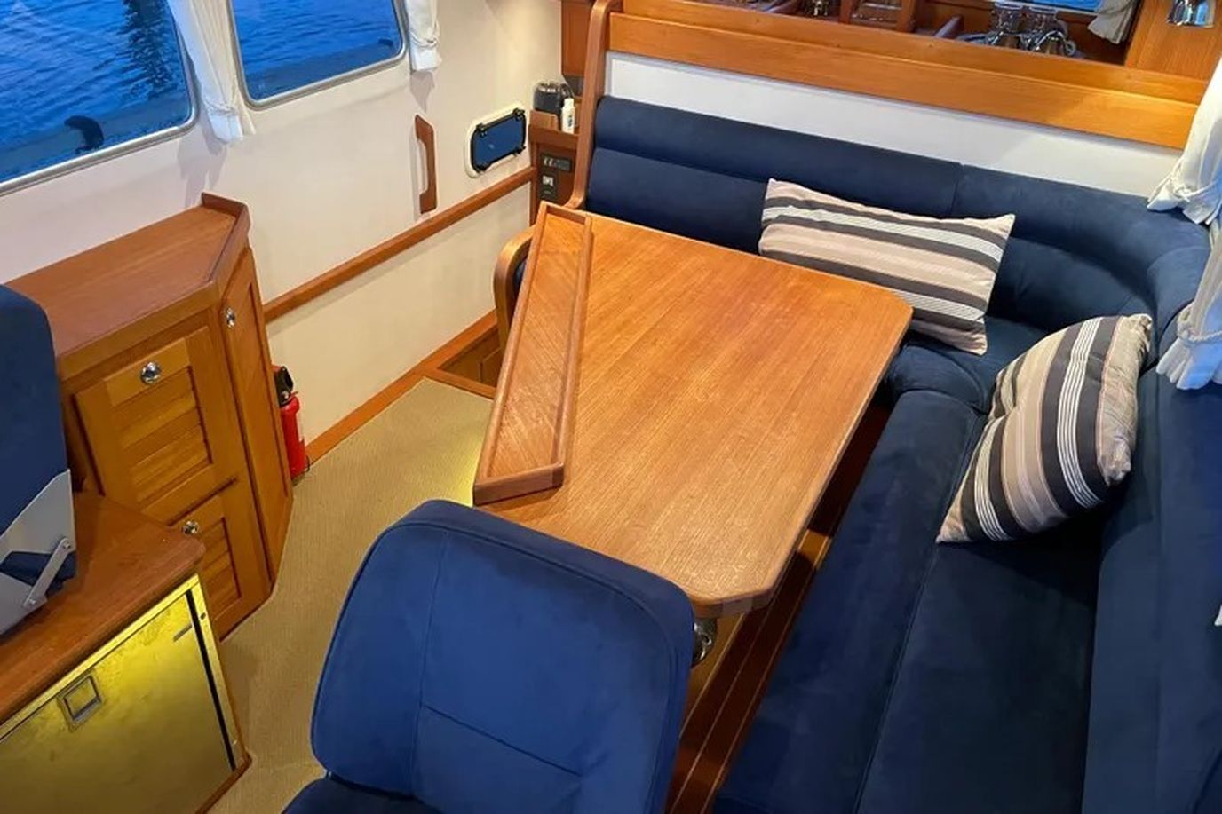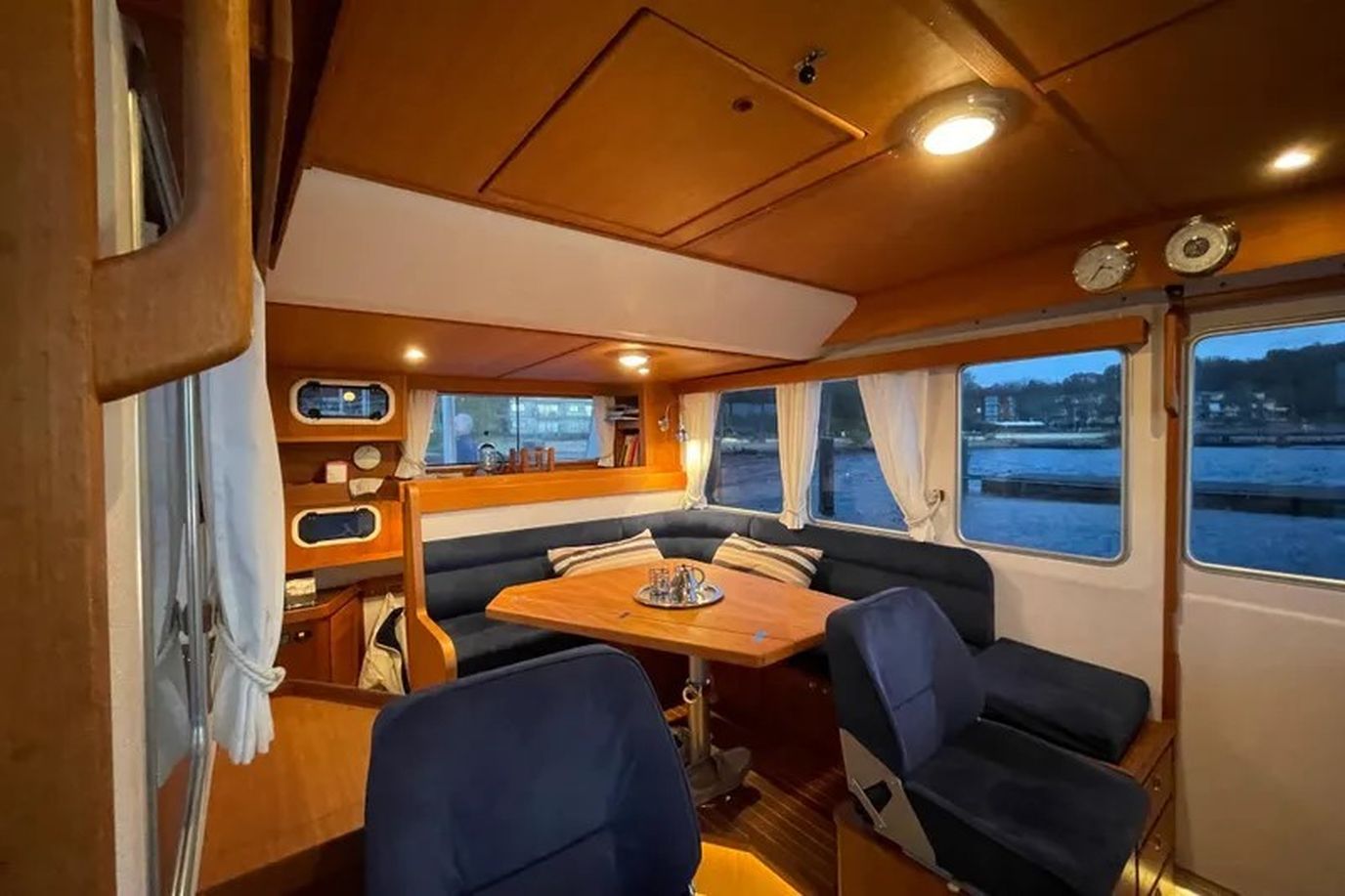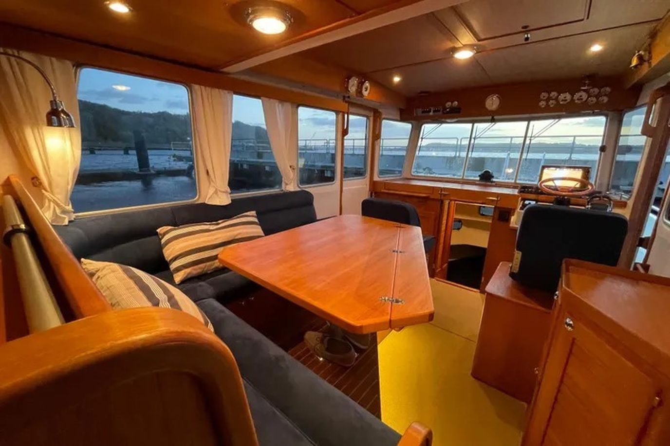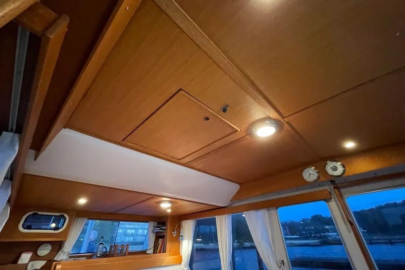 Ingelijste beige tapijt in het stuurhuis