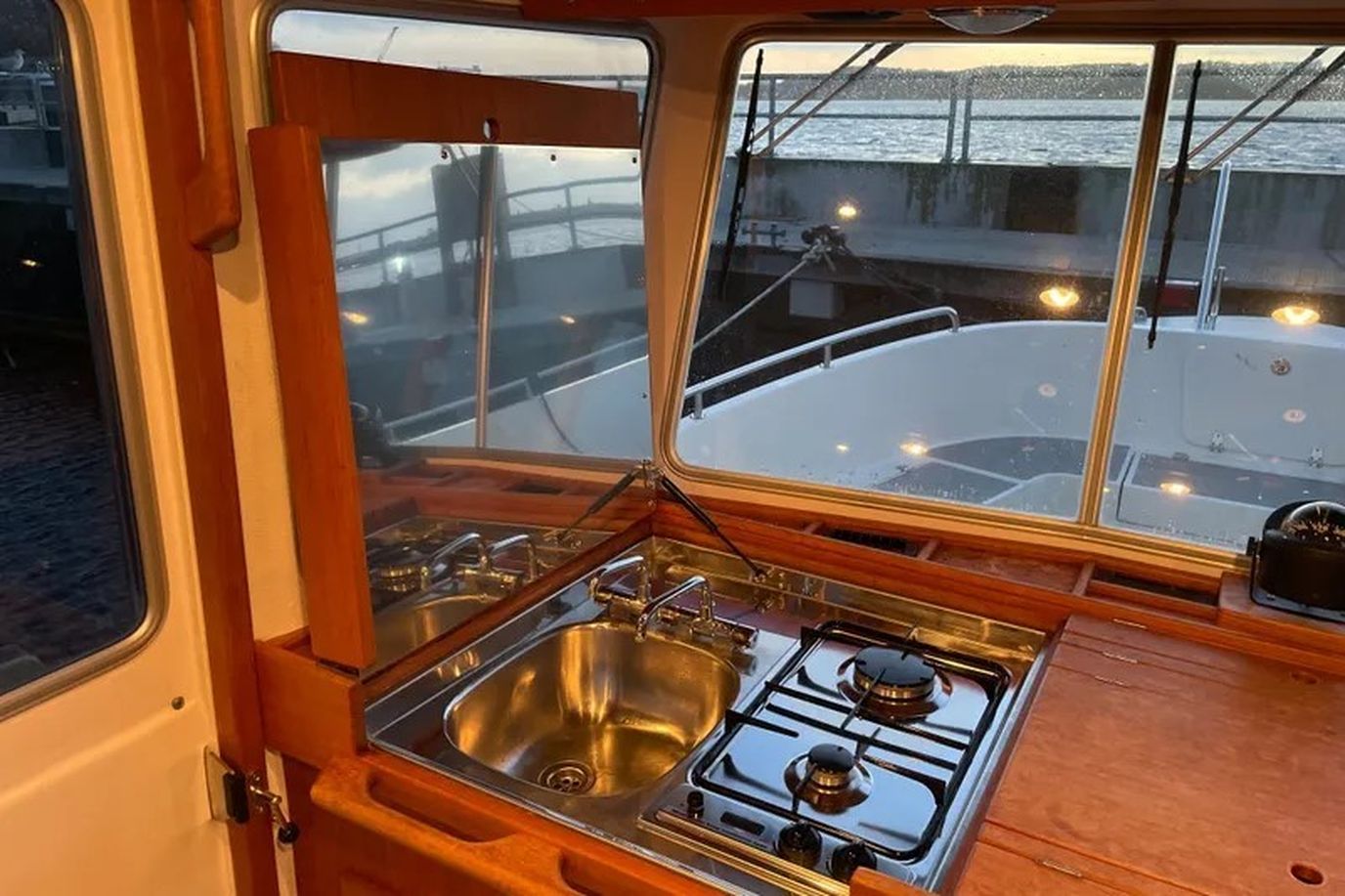 Roestvrijstalen handgrepen op het stuurhuisdak